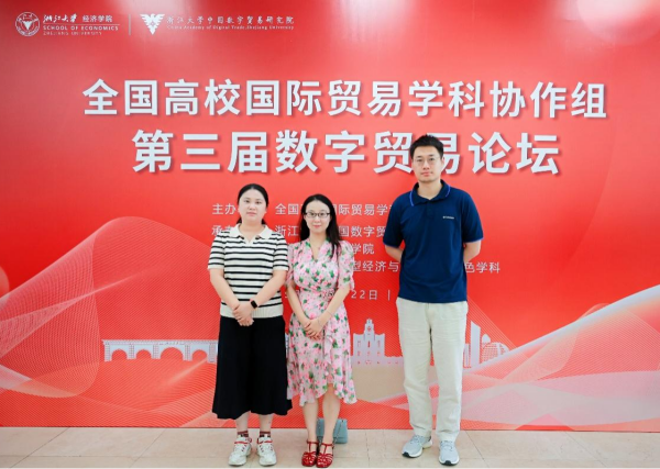 2025年6月21日,由全国高校国际贸易学科协作组主办,浙江大学中国数字贸易研究院、浙江大学经济学院承办的第三届数字贸易论坛在浙江杭州成功举办。beat365中国唯一官方网站国际经济与贸易专业教师代表李茜、张琛、钱琨参加此次会议。
