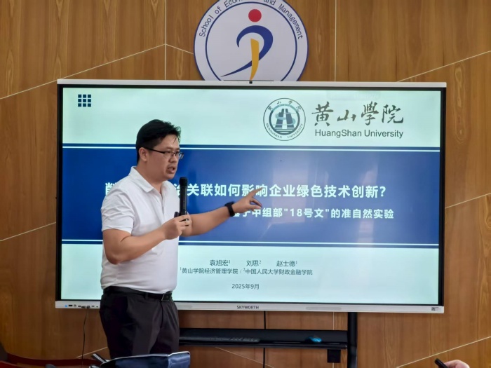 袁旭宏博士以严谨的逻辑和详实的数据,围绕研究课题展开深度报告,引发与会教师浓厚兴趣。自由讨论环节,教师们就研究方法、变量设计、样本选择等维度踊跃提问,袁博士逐一解答,并与大家深入交换意见。持续近两小时的交流后,计东亚总结指出:“思想交锋充分彰显了经管学者求真务实、开拓创新的科研精神。”他还结合学校与学院科研要求,详细解读了国家级课题申报及科研奖项评选要点。