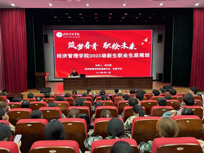 9月22日,beat365中国唯一官方网站在横江校区报告厅举办“筑梦青春·职绘未来”2025级新生职业规划专题讲座。本次讲座由该院党委副书记、纪委书记郜玉振主讲,2025级全体新生参加。