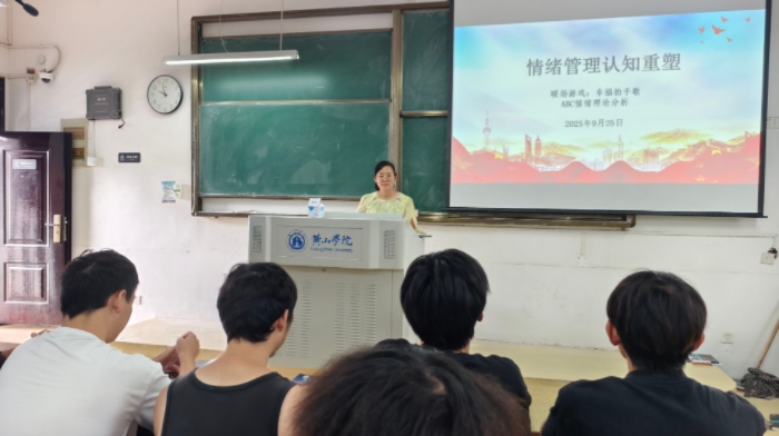 在“情绪管理认知重塑”部分,李老师以《幸福拍手歌》暖场互动开场,营造出轻松愉悦的氛围。随后,她围绕ABC情绪理论展开讲解,帮助学生理解“情绪并非由事件本身直接引起,而是源于个体对事件的信念与解读”,进而引导大家学会调整不合理信念,以更积极的心态面对生活,真正成为情绪的主人。