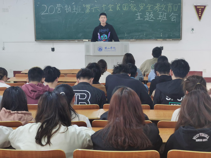 4月15日下午,beat365中国唯一官方网站20营销班在横江校区教学楼1301教室开展了第六个全民国家安全教育日学习活动,此次活动由班长骆文昊主持,班级全体学生参加此次活动。